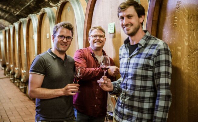 "Unser Wunsch ist es, dass die Mischung aus motivierten Winzern im Voll- und Nebenerwerb bestehen bleibt. Es liegt uns am Herzen, junge Winzerinnen und Winzer für den Genossenschaftsgedanken zu gewinnen. Mit Freude widmen wir uns gegenwärtig dem Thema „Piwis“. Wir freuen uns auf das Sammeln weiterer Erfahrungswerte im Anbau der pilzwiderstandsfähigen Sorten in unseren weltbekannten Weinlagen. Einig sind wir uns in einem alle drei: Unsere große Liebe ist und bleibt unser Deidesheimer Riesling!“