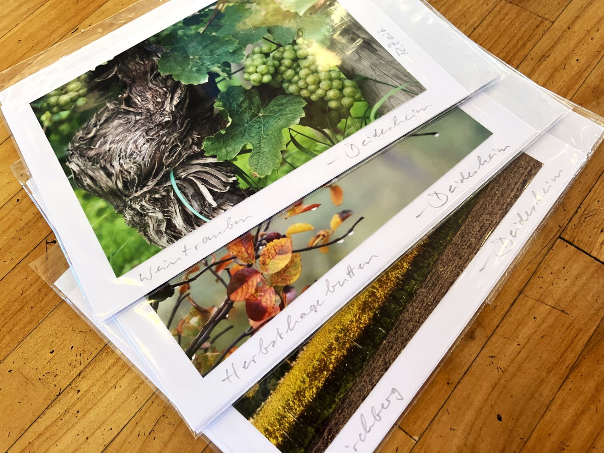 Fügen Sie Ihre Weinauswahl dem Warenkorb hinzu und bestellen Sie zusätzlich diese Grußkarte. Tragen Sie im Feld unten die Nachricht ein, die Sie gerne versenden möchten. Wir tragen diese gerne handschriftlich in eine Grußkarte mit schönem Natur- oder Landschaftsmotiv von Deidesheimer Fotograf Reinhold Zeit ein und versenden das Weinpaket an Ihre Wunschadresse (bitte Lieferadresse im weiteren Bestellvorgang beachten).